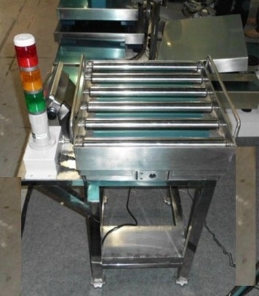 滾筒秤,用于輸送和計量物料流量的滾筒一端通過限位托輥固定安裝在滾筒定位架上,另一端與驅動軸連接,驅動軸安裝在滾筒定位架上,整機安裝在傳感器上。本秤計量精度高,結構簡單,加工、維修方便,可廣泛用于非粘稠塊和粉料物料的計量。是理想的塊狀或粉狀高溫物料連續計量設備。